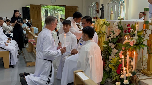 Living and learning at the International Salvatorian Seminary in the Philippines, Bro. Joe Pense, SDS, along with 13 classmates, celebrated his first profession of vows on July 21 in Talon, Philippines, at the Salvatorian Philosophy House. This celebration marked the completion of his novitiate year abroad, during which he was fully immersed in the culture and the Salvatorian way of life. Joe learned about scripture; Church history; canon law; catechises; our Founder, Blessed Francis Jordan; and, of course, the evangelical council – specifically, the religious vows.
